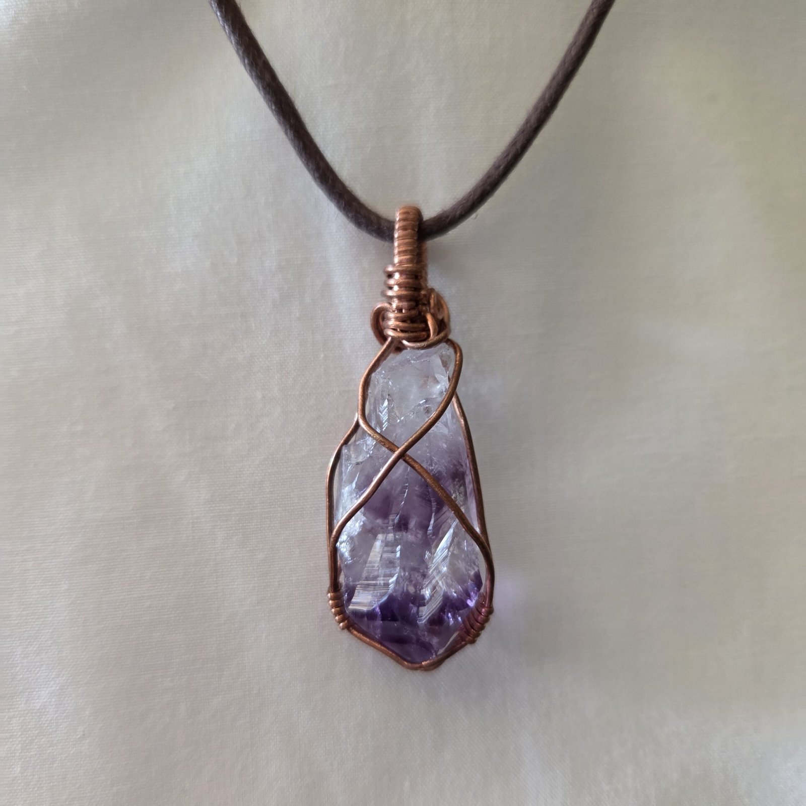 Our crystals are hand woven with raw copper for its beauty and added amplification of conductivity.
